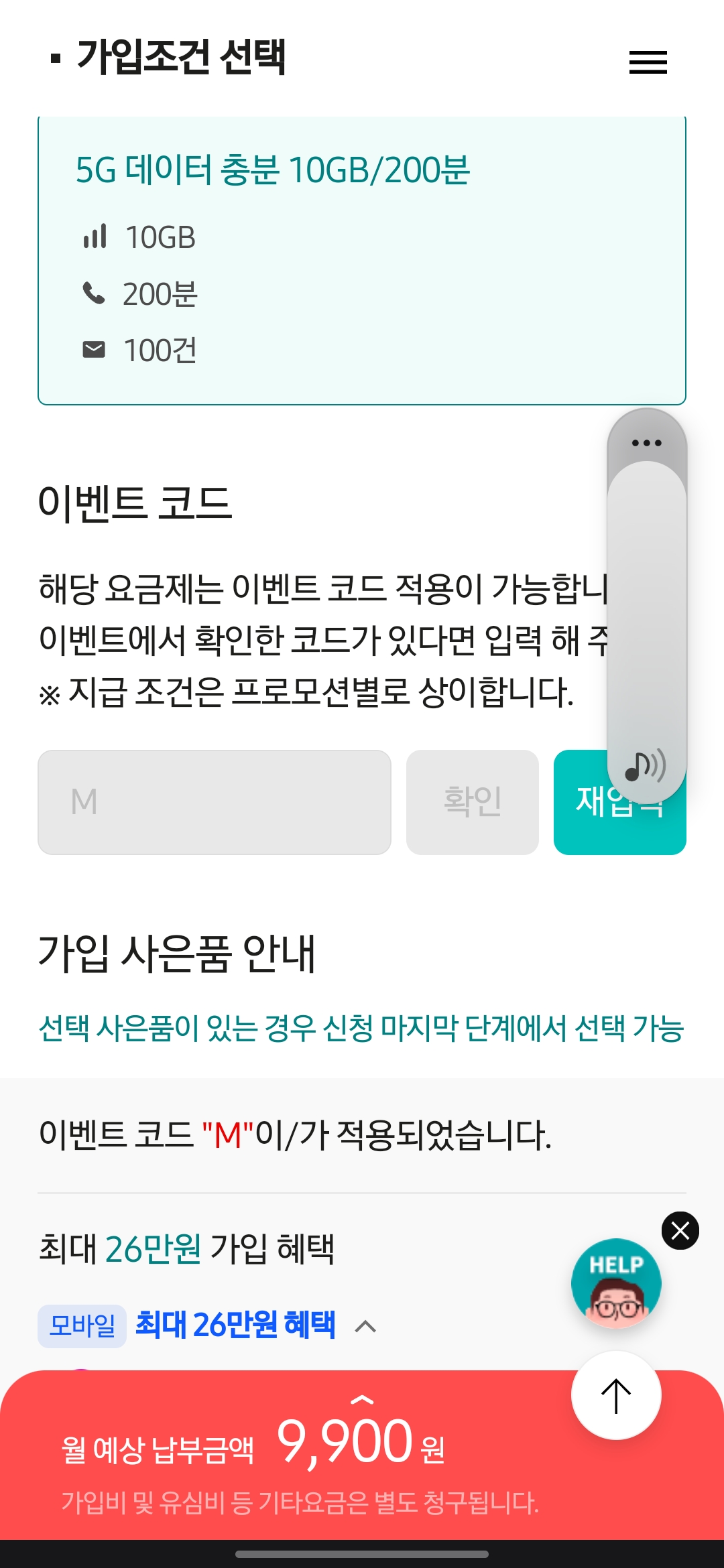 제가 고른 건 5G 데이터 충분 10GB/200분 요금제입니다.